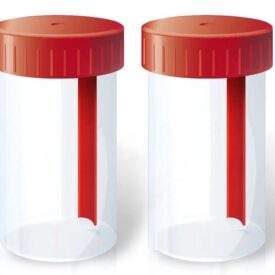 Set 2 Contenitori per Raccolta Feci, 60 ml, Sterili con Paletta, Chiusura Ermetica ed Etichetta Dati, Per Analisi Coprologiche, Temperatura 15-25°C