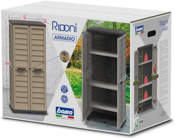 L’armadio alto Bama Riponi in resina effetto legno sabbia rappresenta una soluzione d’arredo versatile, elegante e resistente, ideale per chi desidera mantenere in ordine ogni ambiente, sia domestico che professionale. Realizzato con materiali di alta qualità e un design curato nei dettagli, è perfetto per ambienti interni ed esterni, offrendo un equilibrio perfetto tra funzionalità, estetica e durata nel tempo.