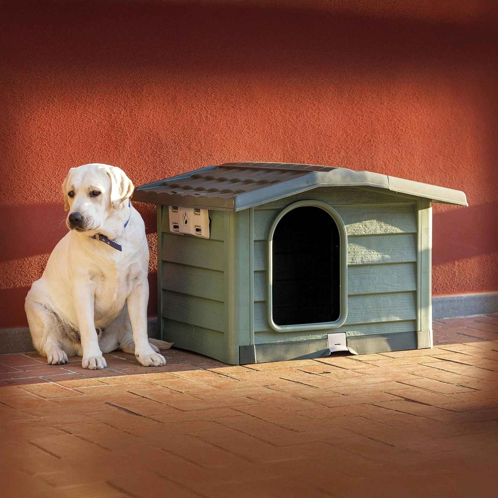 Bama – Bungalow Cuccia per Cani da Esterno Verde 89x75x62 cm – Robusta, Ventilata e Facile da Pulire