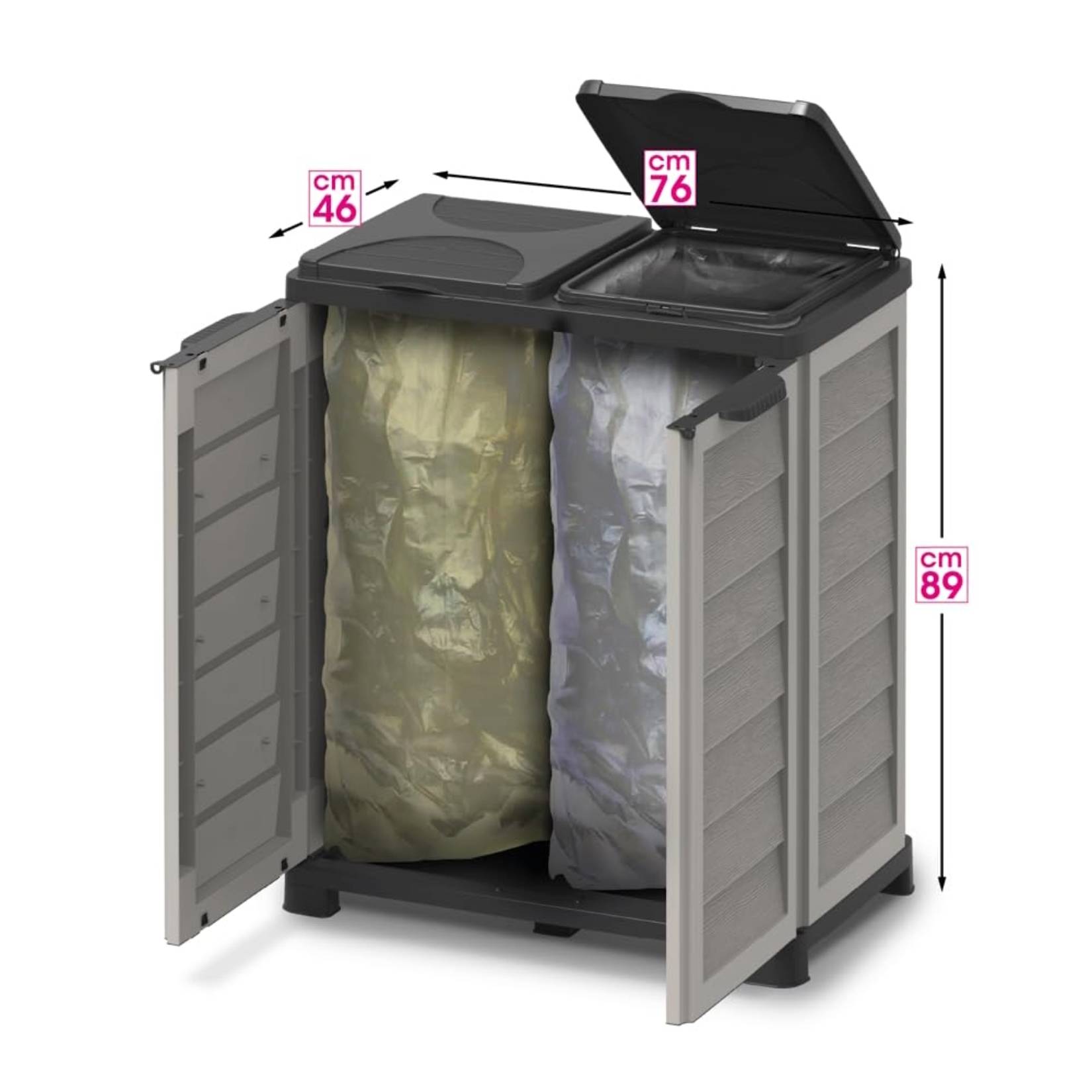 La Bama – Pattumiera Riponi 2 sacchi da 100L – Grigia è una soluzione pratica e funzionale per organizzare la raccolta dei rifiuti in casa, in garage, in giardino, in balcone o in ambienti di servizio. Progettata per ospitare comodamente due sacchi da 100 litri, consente di gestire in modo ordinato la raccolta differenziata, riducendo ingombro, disordine e odori indesiderati. Il design compatto e verticale permette di sfruttare lo spazio in altezza, facilitando l’inserimento della pattumiera anche in angoli o zone di passaggio.