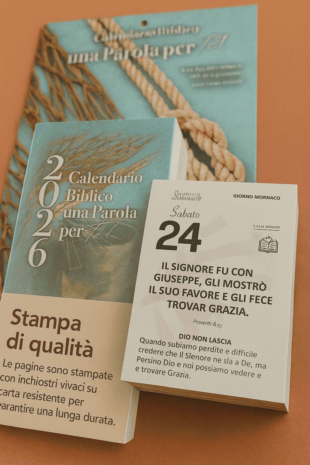 Questo calendario rappresenta una perfetta combinazione tra utilità pratica e valore spirituale, rendendolo ideale per chi desidera vivere l’anno con un atteggiamento di gratitudine e fiducia.