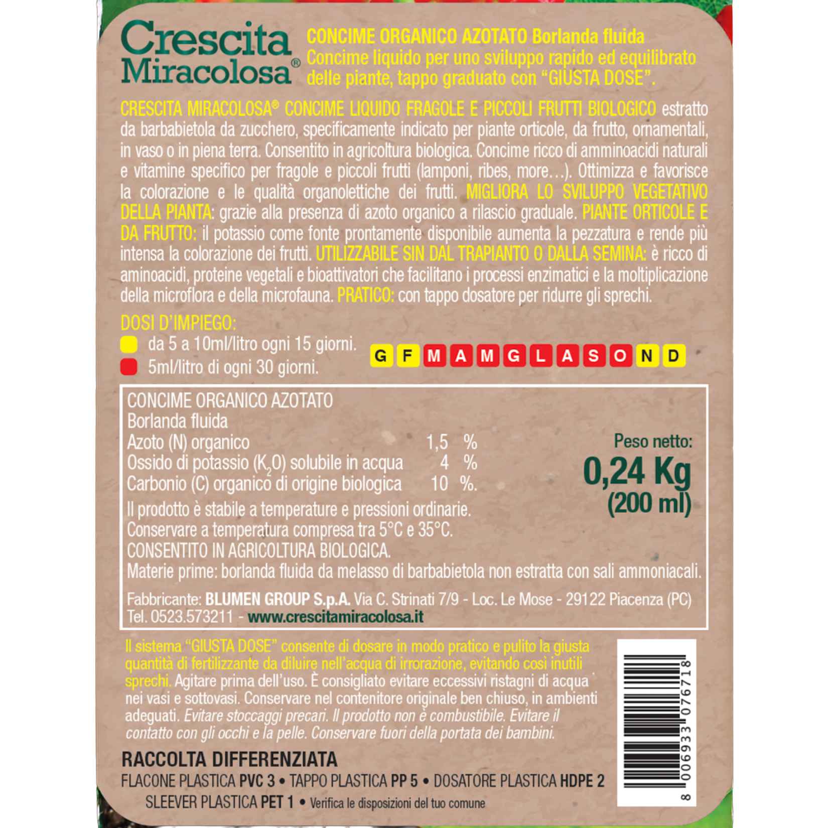Shop » Fertilizzanti, Concimi e Terricci » Concimi e fertilizzanti » Specifici (orto, prato, piante fiorite, piante grasse) » Crescita Miracolosa – Concime Bio Fragole e Frutti di Bosco 200 ml