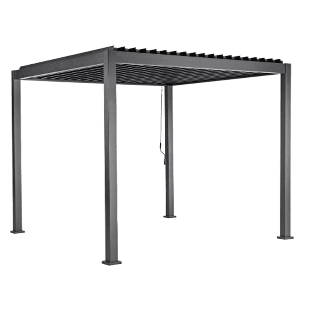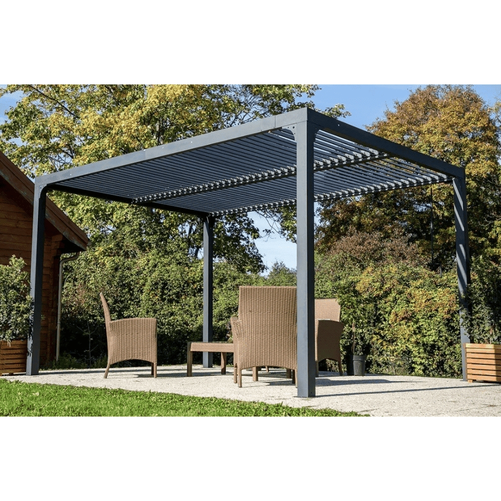 Pergola Bioclimatica 3×4 m in Alluminio, Marrone con Lamelle Orientabili, Grondaia con Scarico Acqua, Stile Moderno, Rettangolare
