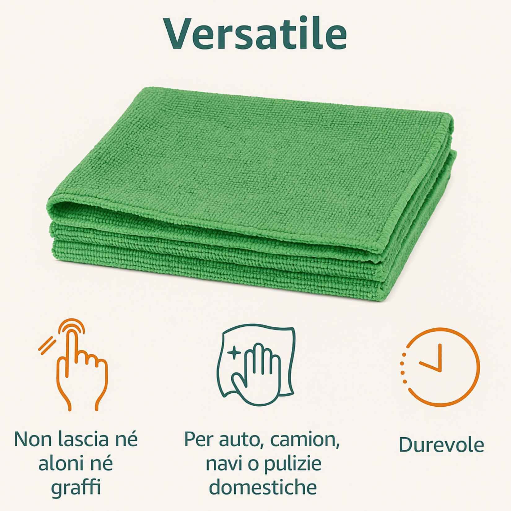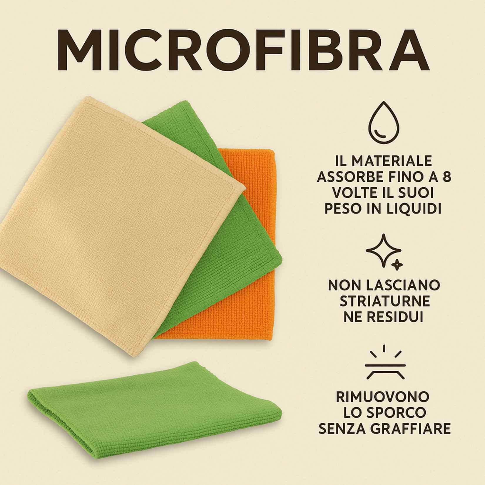 Grazie alla loro composizione in microfibra ad alta densità, questi panni combinano efficienza, resistenza e delicatezza, garantendo risultati eccezionali su qualsiasi superficie.