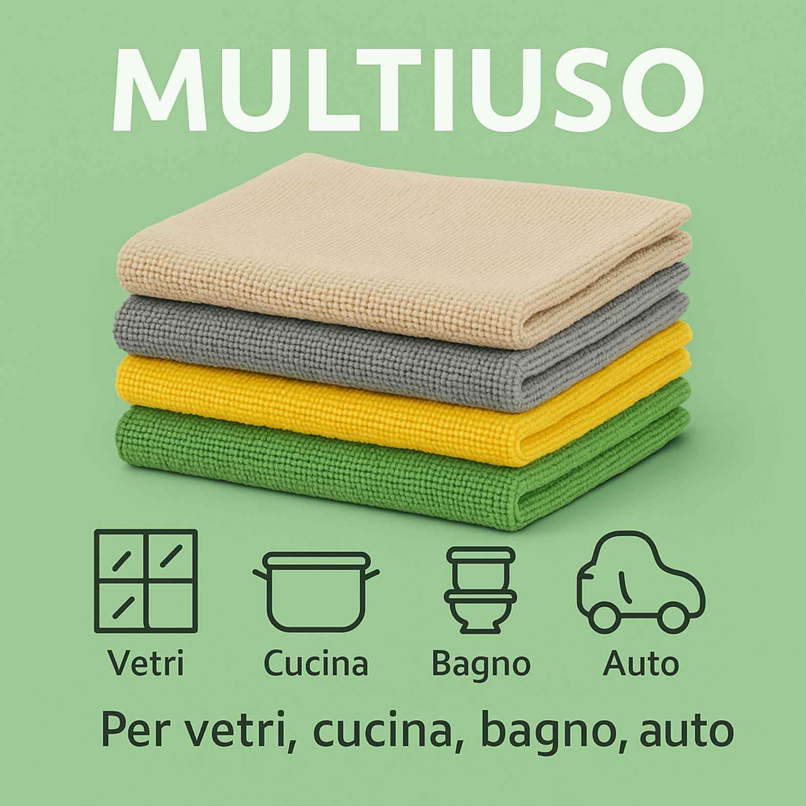 Con la confezione da 20 pezzi, avrai sempre un panno a disposizione per ogni ambiente e utilizzo, dalla cucina al bagno, dal vetro alla tappezzeria.