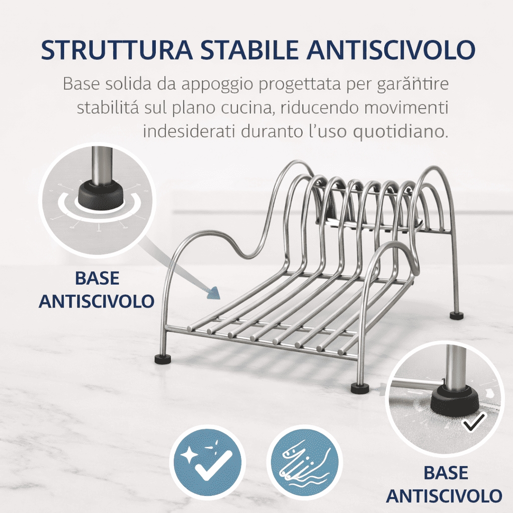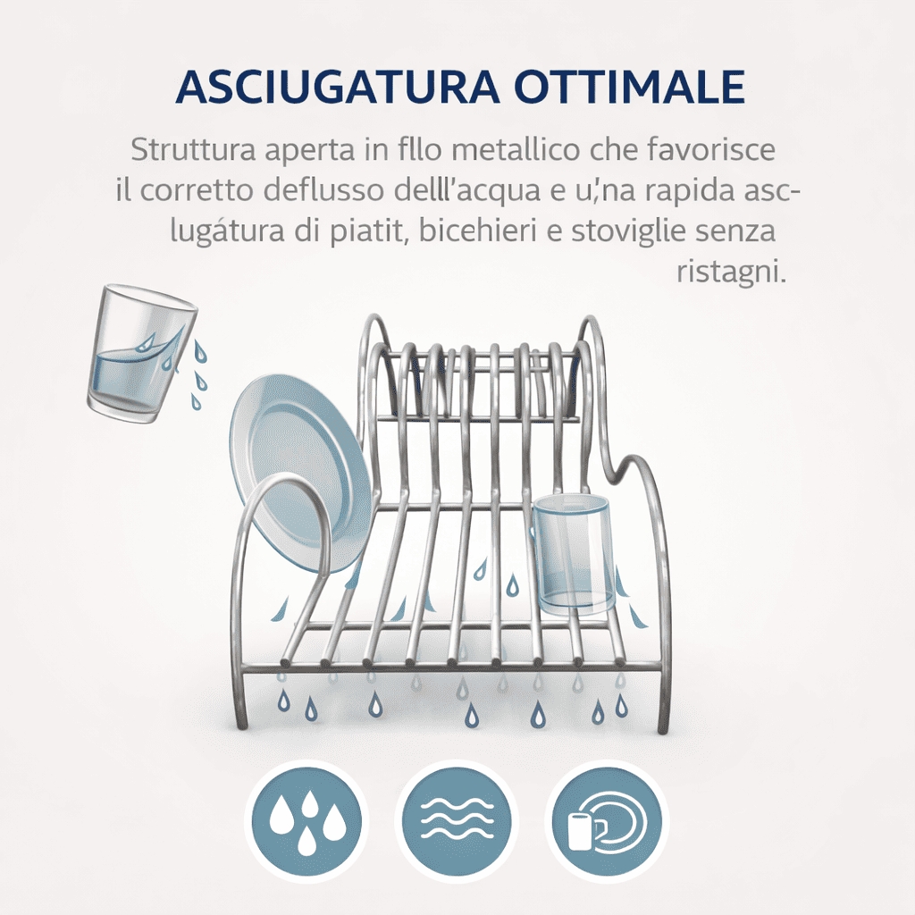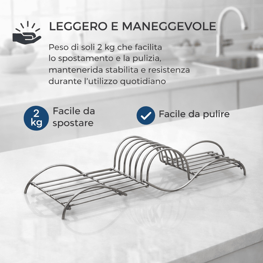 Un porta piatti che unisce in un unico prodotto estetica, praticità e durata, perfetto per chi vuole una cucina sempre ordinata, efficiente e dal look contemporaneo.