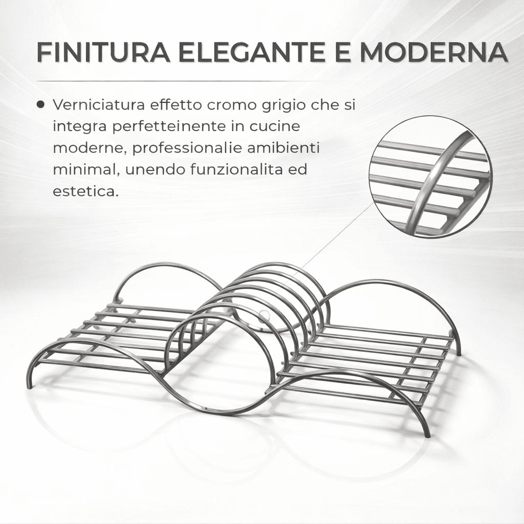 Scolapiatti da Appoggio Trafilato in Ferro FE360B o Acciaio Inox, Porta Piatti da Cucina Resistente e Design Moderno, Verniciato Effetto Cromo, Grigio ,Ideale per Cucine Moderne e Professionali.