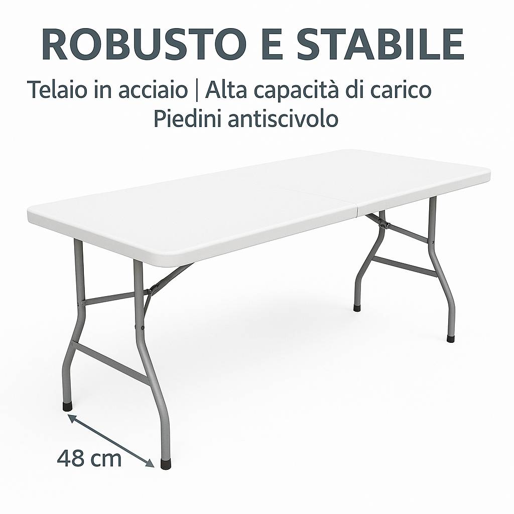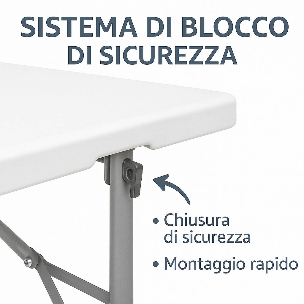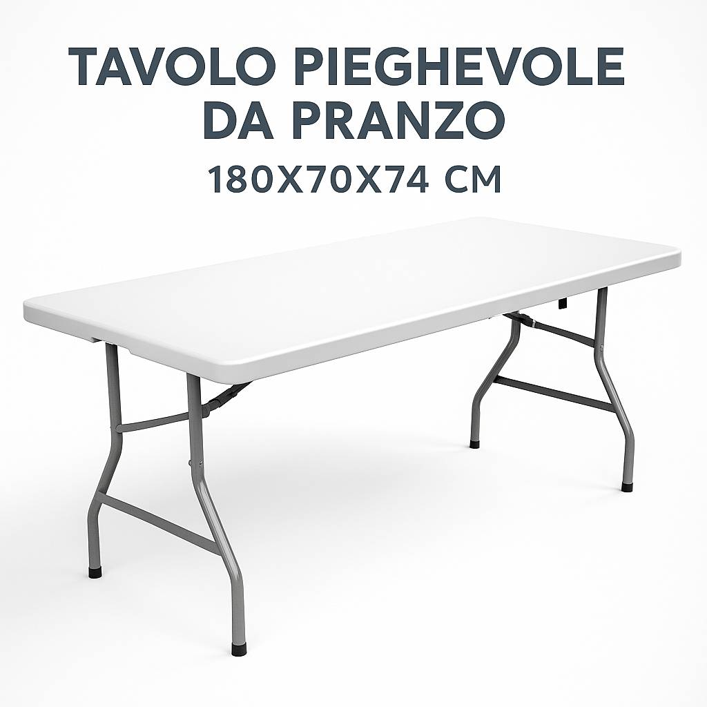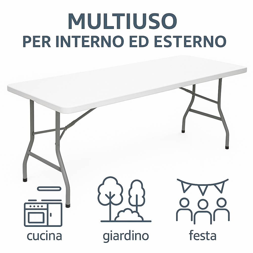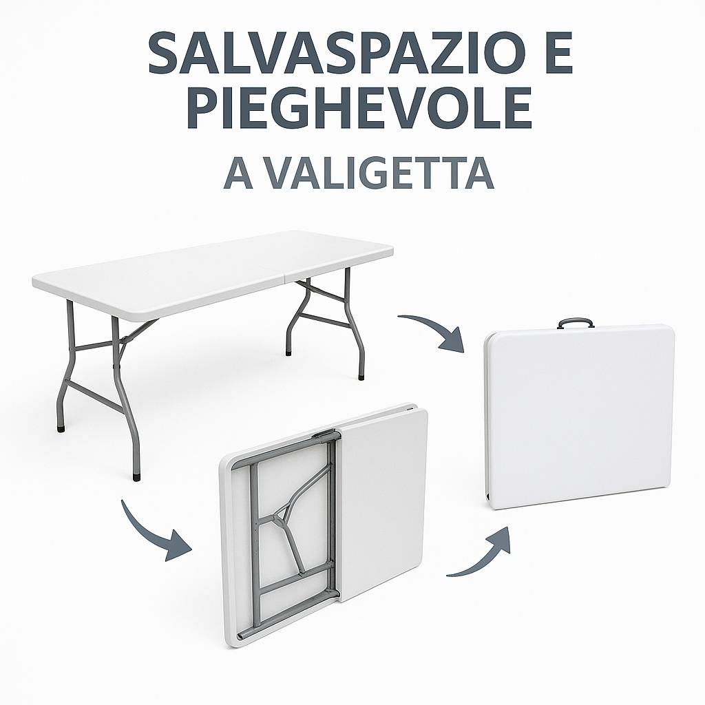 Shop » Outdoor e Giardino » Accessori per esterno (teli, coperture, arredi, ombrelloni) » Tavolo Pieghevole da Pranzo, Bianco, 180x70x74 cm, Piano in HDPE, Salvaspazio per Cucina e Soggiorno, Portatile con Blocco di Sicurezza, per 6 Persone