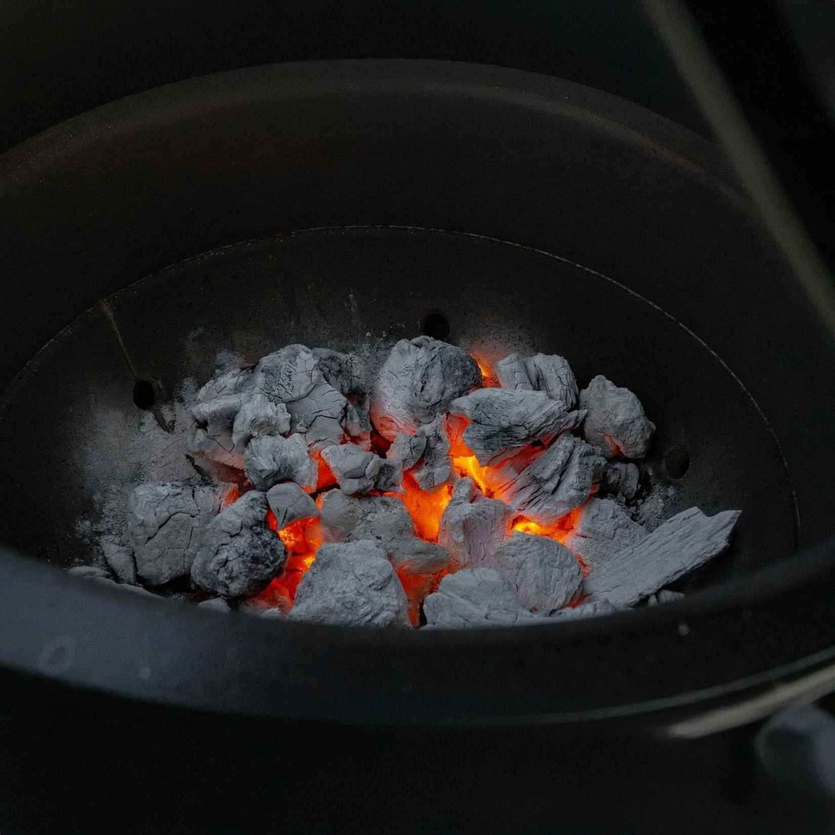 Accensione rapida: la carbonella raggiunge velocemente la fase di brace ardente.